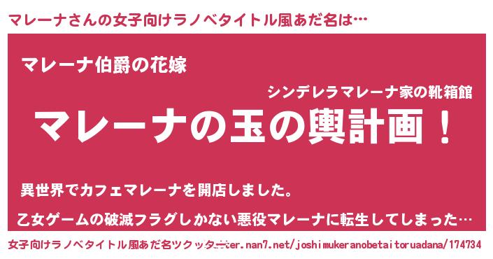 | 男性向けラノベタイトル風あだ名 | 『転生したらマレーナだった件』 |