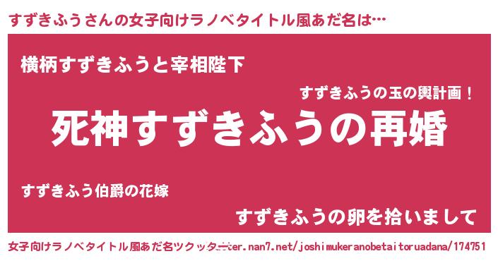 | ヒーロー風カッコイイあだ名 | 『慈愛の使者すずきふう』『炎刃騎士スズ』 |