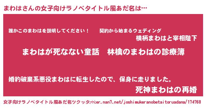 | 意味不明あだ名 | 『住所不定無職まわは(40歳)』 |