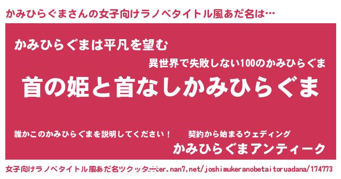 | 男性向けラノベタイトル風あだ名 | 『はたらくかみひらぐまさま!』 |