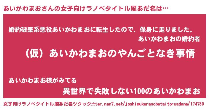 | 男性向けラノベタイトル風あだ名 | 『あいかわまおの憂鬱』 |