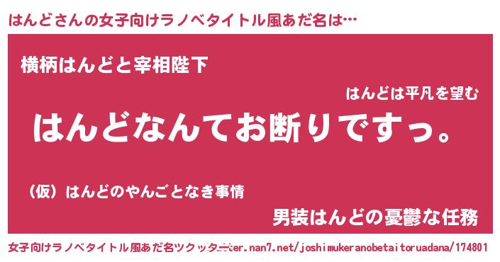 | 意味不明あだ名 | 『自称はんど』『とにかく怪しいはんど』 |