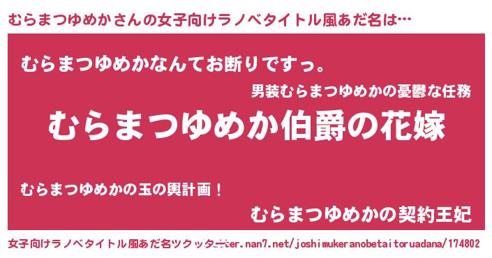 | 肩書あだ名 | 『むらまつゆめか大統領』 |