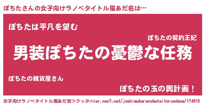 | 胡散臭い通販商品みたいなあだ名 | 『伝統あるサプリメント…その名も「ぽちた」』 |