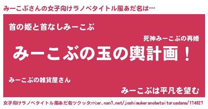| ヒーロー風カッコイイあだ名 | 『天弓騎士ミー』『正義の使者みーこぶ』 |