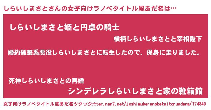 | 胡散臭い通販商品みたいなあだ名 | 『必ず成功する水晶球…その名も「しらいしまさと」』 |