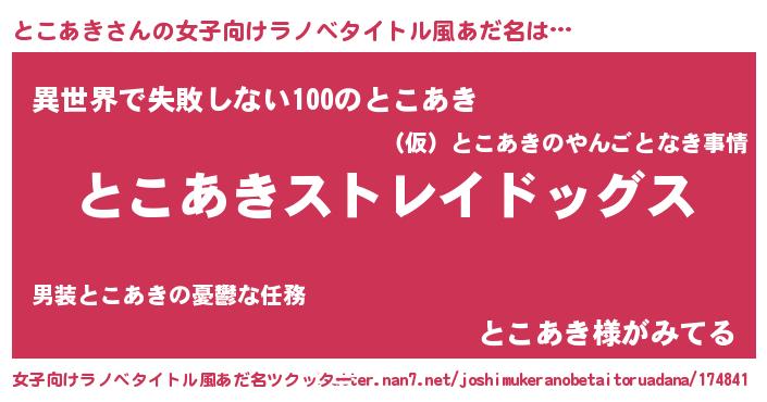 | 意味不明あだ名 | 『自称とこあき』『永久保存とこあき』 |