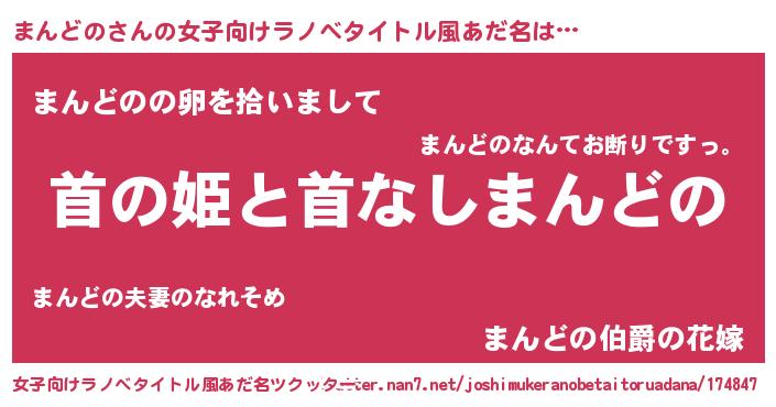 | 胡散臭い通販商品みたいなあだ名 | 『信頼と実績のサプリメント…その名も「まんどの」』 |