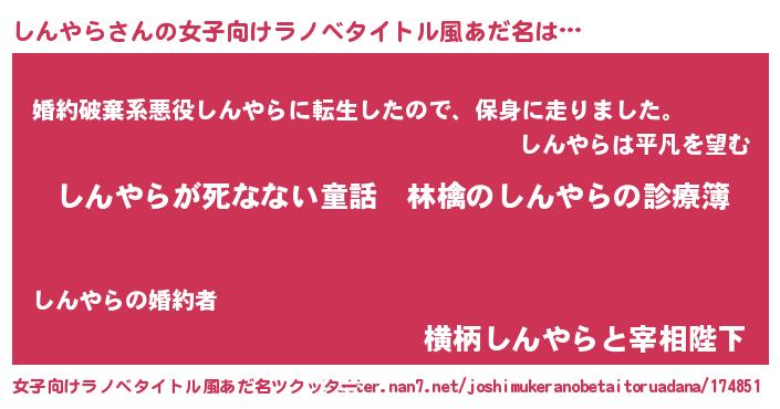 | 意味不明あだ名 | 『住所不定無職しんやら(8歳)』 |