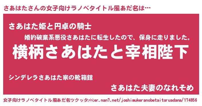 | ヘコむあだ名 | 『さあふぇ~』『さあはた(笑)』 |
