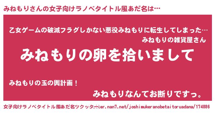 | ヘコむあだ名 | 『みねお』『つくし』『みねもり(笑)』 |