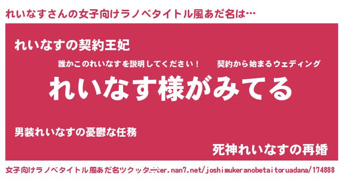 | 意味不明あだ名 | 『とにかく怪しいれいなす』 |