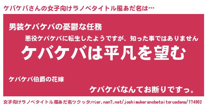 | 胡散臭い通販商品みたいなあだ名 | 『信頼と実績のサプリメント…その名も「ケバケバ」』 |