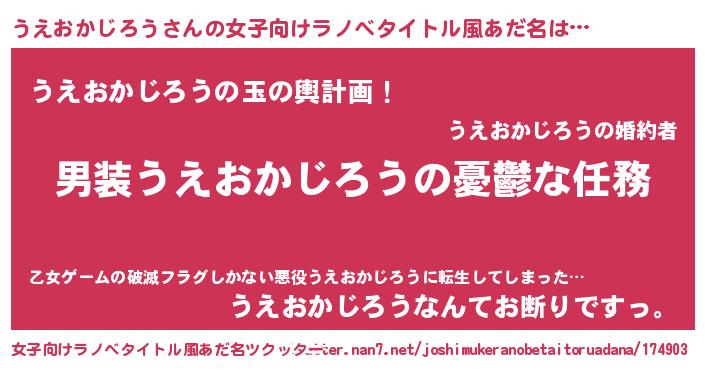 | 男性向けラノベタイトル風あだ名 | 『冴えないうえおかじろうの育てかた』 |