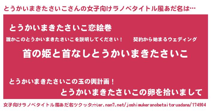 | 胡散臭い通販商品みたいなあだ名 | 『100人中100人が認めたイリジウム磁石…その名も「とうかいまきたさいこ」』 |