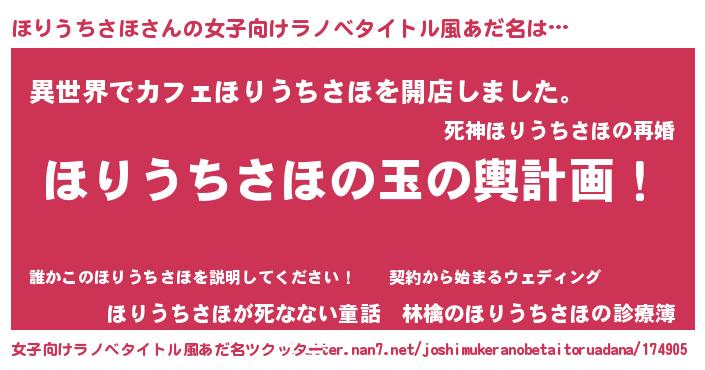 | 男性向けラノベタイトル風あだ名 | 『ほりうちさほ~年齢イコール彼女いない歴の魔法使い~』 |