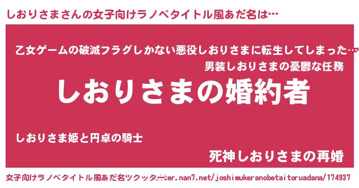 | ファンタジー風あだ名 | 『エターナルシオリサマー』『シオフェル』 |
