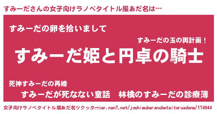 | 男性向けラノベタイトル風あだ名 | 『すみーだの憂鬱』『魔弾の王とすみーだ』 |