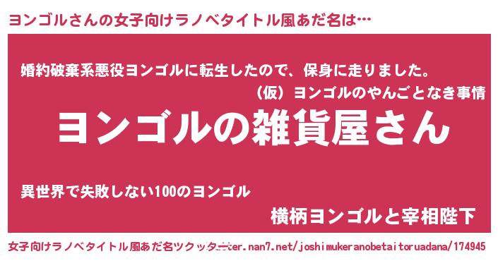 | 男性向けラノベタイトル風あだ名 | 『やはりヨンゴルの青春ラブコメはまちがっている 』 |