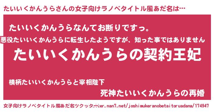 | 胡散臭い通販商品みたいなあだ名 | 『来世でも幸せになれる水素水…その名も「たいいくかんうら」』 |