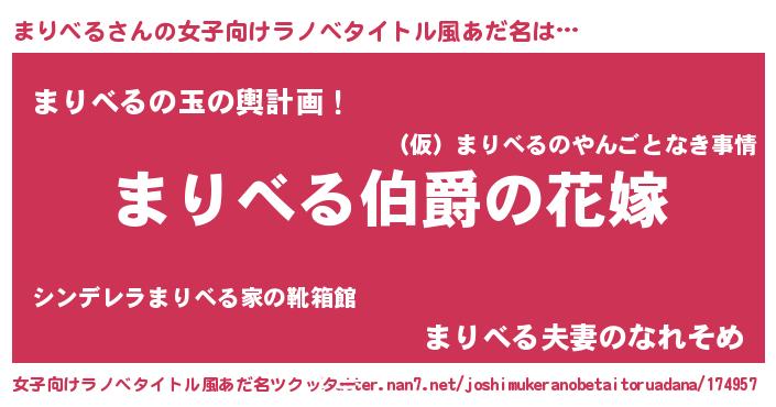 | 意味不明あだ名 | 『まりべるフォーエバー』 |