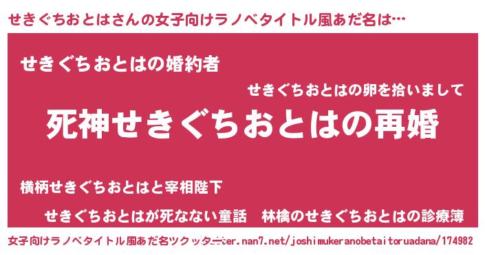 | 胡散臭い通販商品みたいなあだ名 | 『モンドセレクションを受賞した隕石のかけら…その名も「せきぐちおとは」』 |