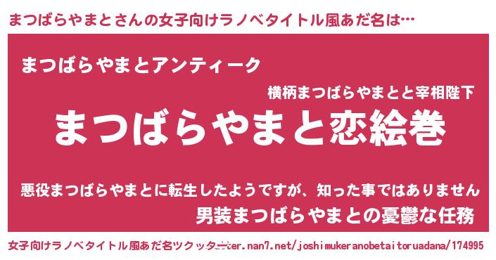 | 男性向けラノベタイトル風あだ名 | 『ノーゲーム・ノーマツバラヤマト』 |