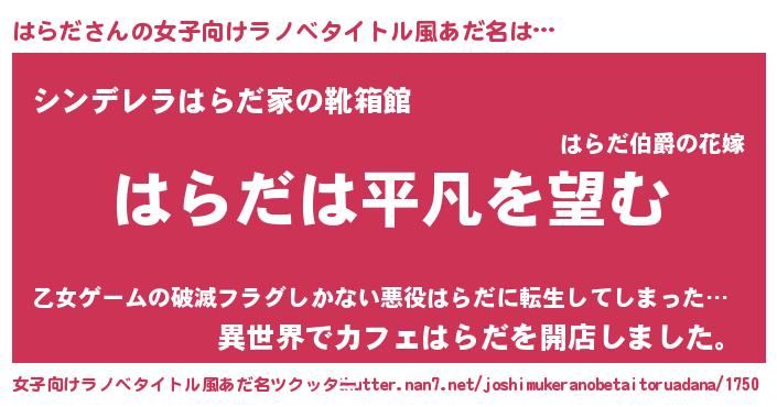 | 胡散臭い通販商品みたいなあだ名 | 『信頼と実績のペンダント…その名も「はらだ」』 |