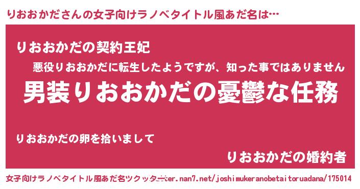 | 男性向けラノベタイトル風あだ名 | 『うちのりおおかだが世界を掌握している!』 |