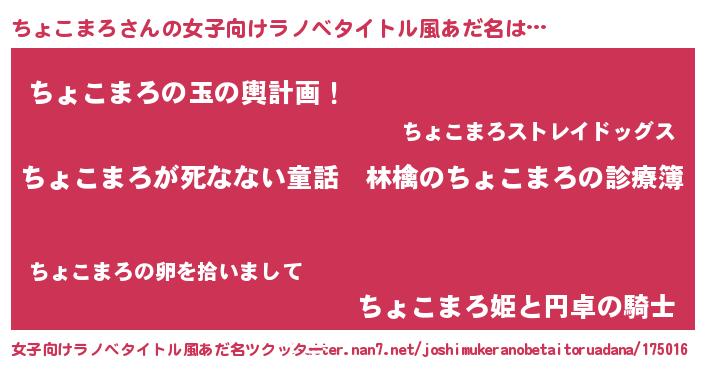 | 欧米人風あだ名 | 『ダレノガレちょこまろ』 |