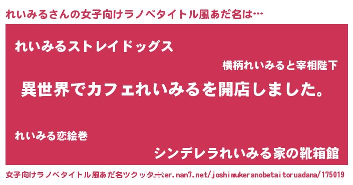 | 伝説のあだ名 | 『古文書に記された暗殺者れいみる』 |