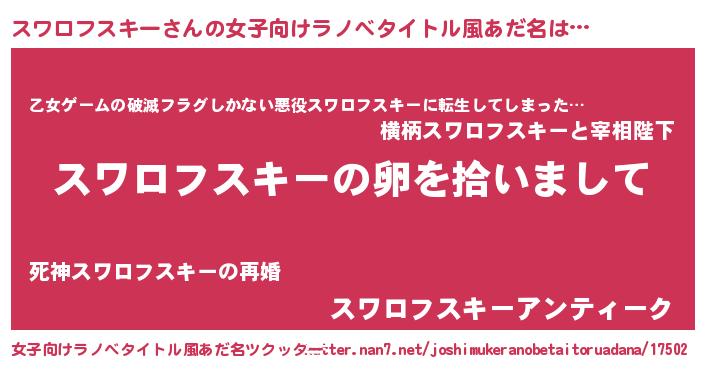 | ヘコむあだ名 | 『スワっぺ』『スワロフスキー(震え声)』 |