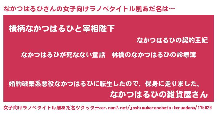 | 意味不明あだ名 | 『住所不定無職なかつはるひ(95歳)』 |