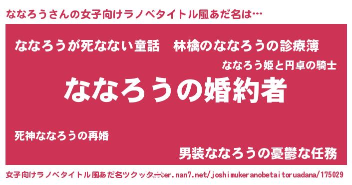 | 恥ずかしいあだ名 | 『ななっちょ』『プリティーななろう』 |