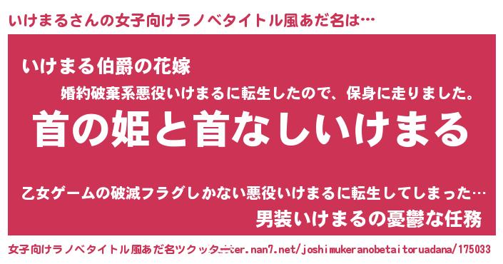 意味不明あだ名 | 『いけまるフォーエバー』『自称いけまる』 |