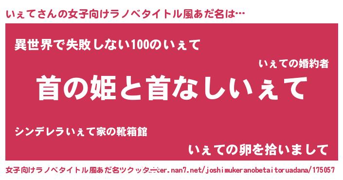 | 胡散臭い通販商品みたいなあだ名 | 『来世でも幸せになれる水素水…その名も「いぇて」』 |