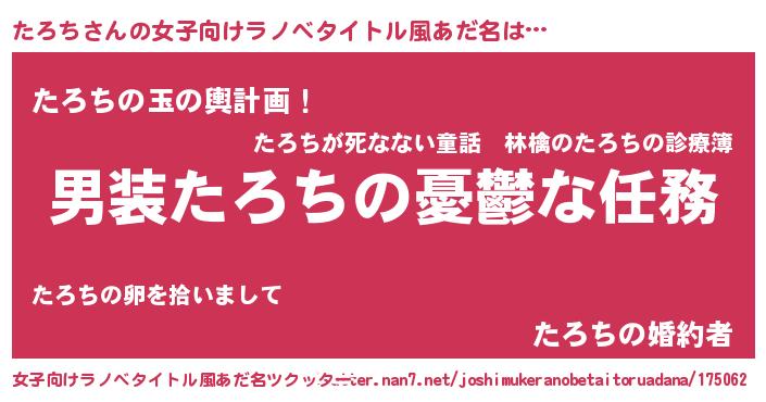 | 胡散臭い通販商品みたいなあだ名 | 『世界が平和になる高級そうな壺…その名も「たろち」』 |