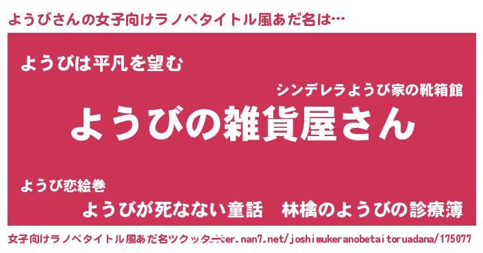 | 男性向けラノベタイトル風あだ名 | 『やはりようびの青春ラブコメはまちがっている 』 |