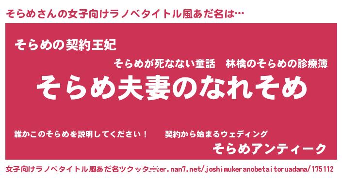 | 意味不明あだ名 | 『眠気覚ましガムそらめ味』『自称そらめ』 |