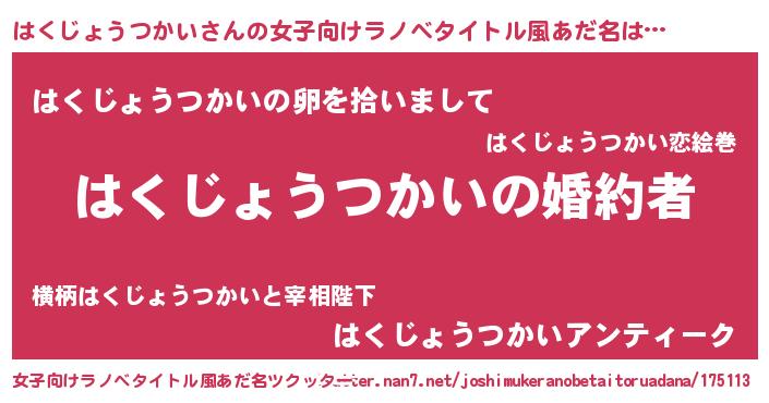 | 胡散臭い通販商品みたいなあだ名 | 『運命の人と巡り会える高級そうな壺…その名も「はくじょうつかい」』 |
