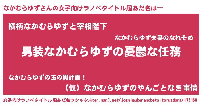 | ヘコむあだ名 | 『なかもー』『なかむらゆず(苦笑)』 |