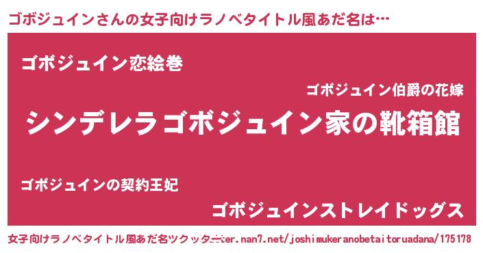 | 男性向けラノベタイトル風あだ名 | 『緋弾のゴボジュイン』 |