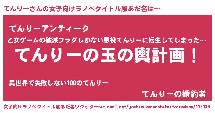 | 男性向けラノベタイトル風あだ名 | 『転生したらてんりーだった件』 |