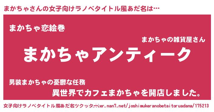 | 男性向けラノベタイトル風あだ名 | 『魔法科高校のまかちゃ』 |