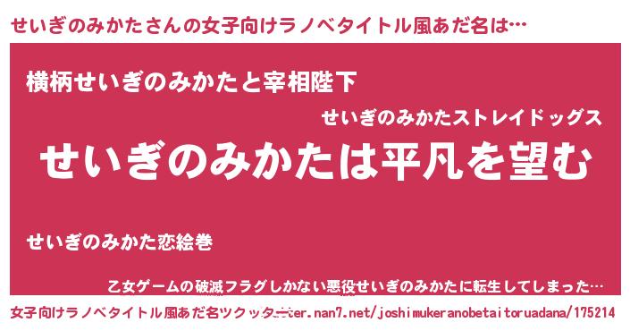 | ポケモン風あだ名 | 『ヒセイギノミカタ』『セイゴンZ』 |