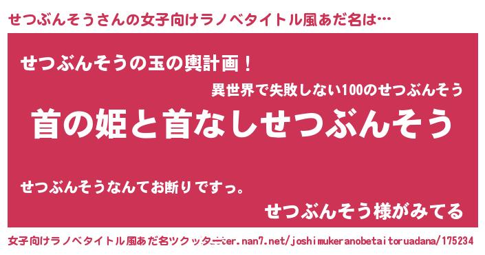| 男性向けラノベタイトル風あだ名 | 『はたらくせつぶんそうさま!』 |