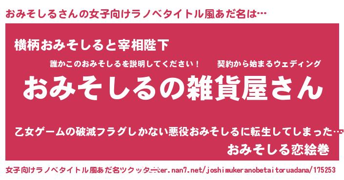 | 男性向けラノベタイトル風あだ名 | 『やはりおみそしるの青春ラブコメはまちがっている 』 |