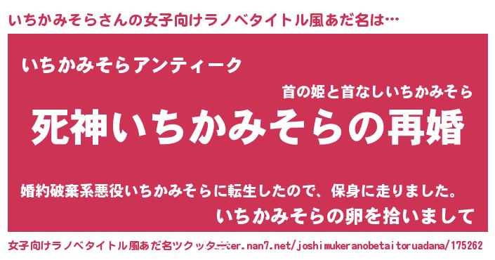 | 男性向けラノベタイトル風あだ名 | 『ノーゲーム・ノーイチカミソラ』 |