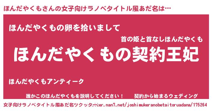 | 胡散臭い通販商品みたいなあだ名 | 『来世でも幸せになれる水素水…その名も「ほんだやくも」』 |