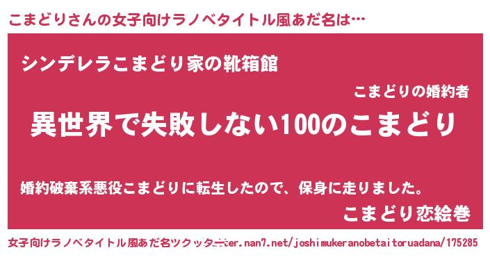 | 胡散臭い通販商品みたいなあだ名 | 『絶対に幸福をもたらす健康食品…その名も「こまどり」』 |